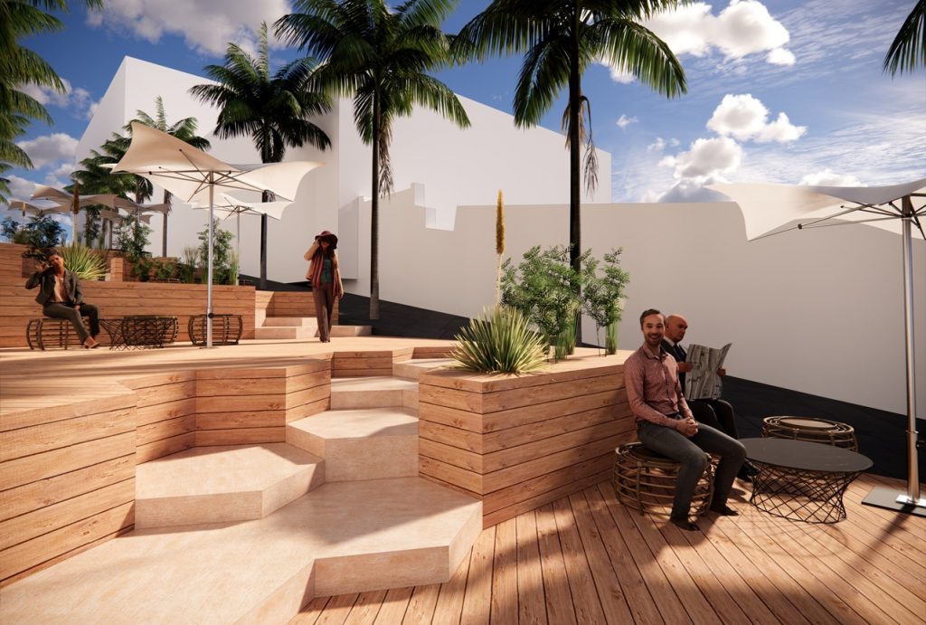 Por último, el tercer proyecto consiste en la construcción de Plataformas en Espacio Residual sobre la calle 1, entre avenidas 3 y 5 con una inversión de 1 millón 455 mil 86.23 pesos y consiste en la instalación de plataformas que sirvan como un área de descanso y esparcimiento del peatón, aprovechando la oferta comercial sobre esa arteria.