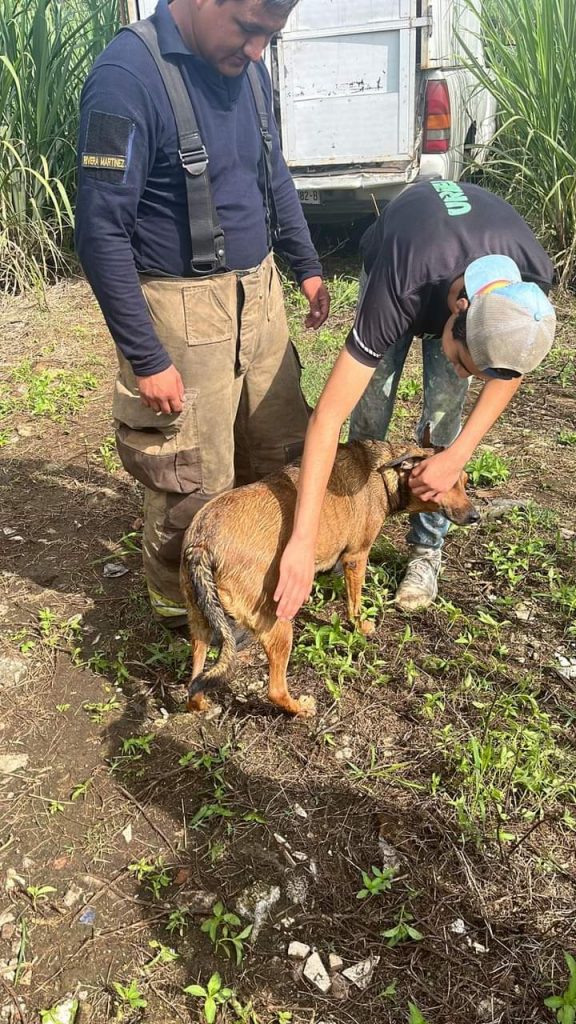 Fortín, Ver. – En respuesta a un reporte de emergencia, bomberos voluntarios del estado de Veracruz acudió al fraccionamiento Ex Hacienda San Marcial, para rescatar a un perro que había caído en un pozo artesanal.