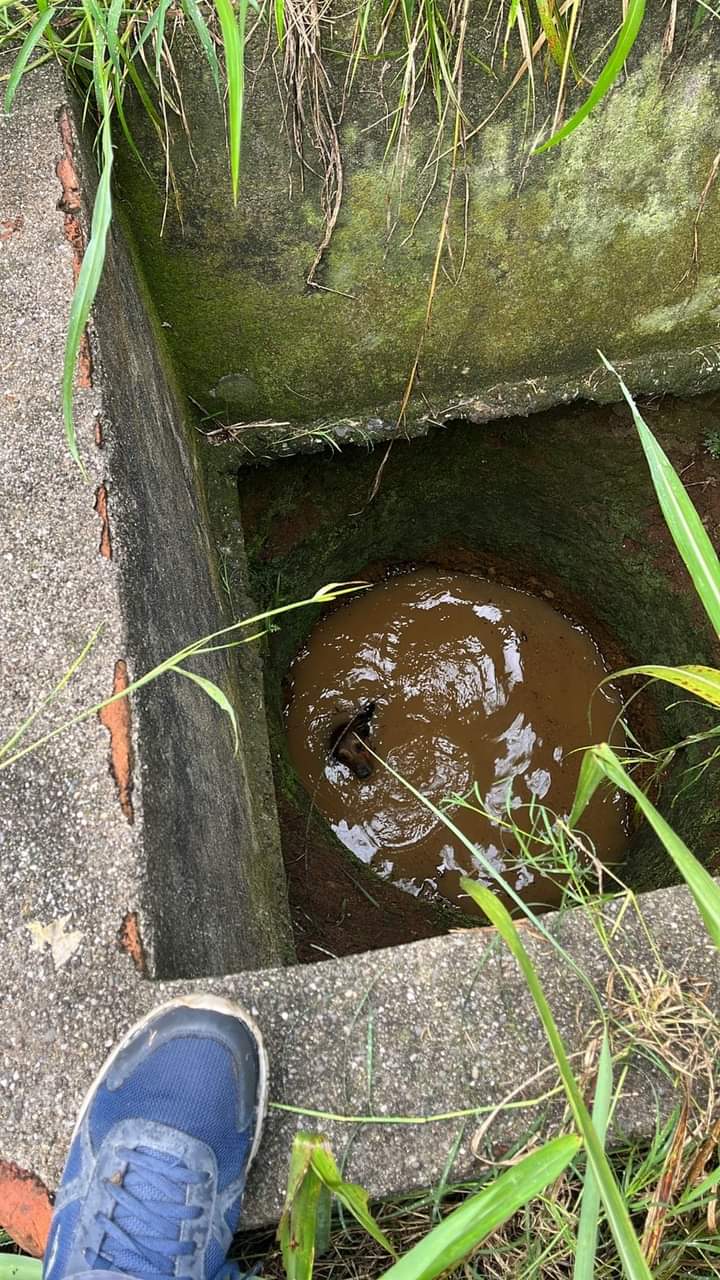 Según informes, el canino, un ejemplar de raza criolla de 4 años de edad, había caído en el pozo la noche anterior y fue encontrado por sus dueños hasta esta mañana.