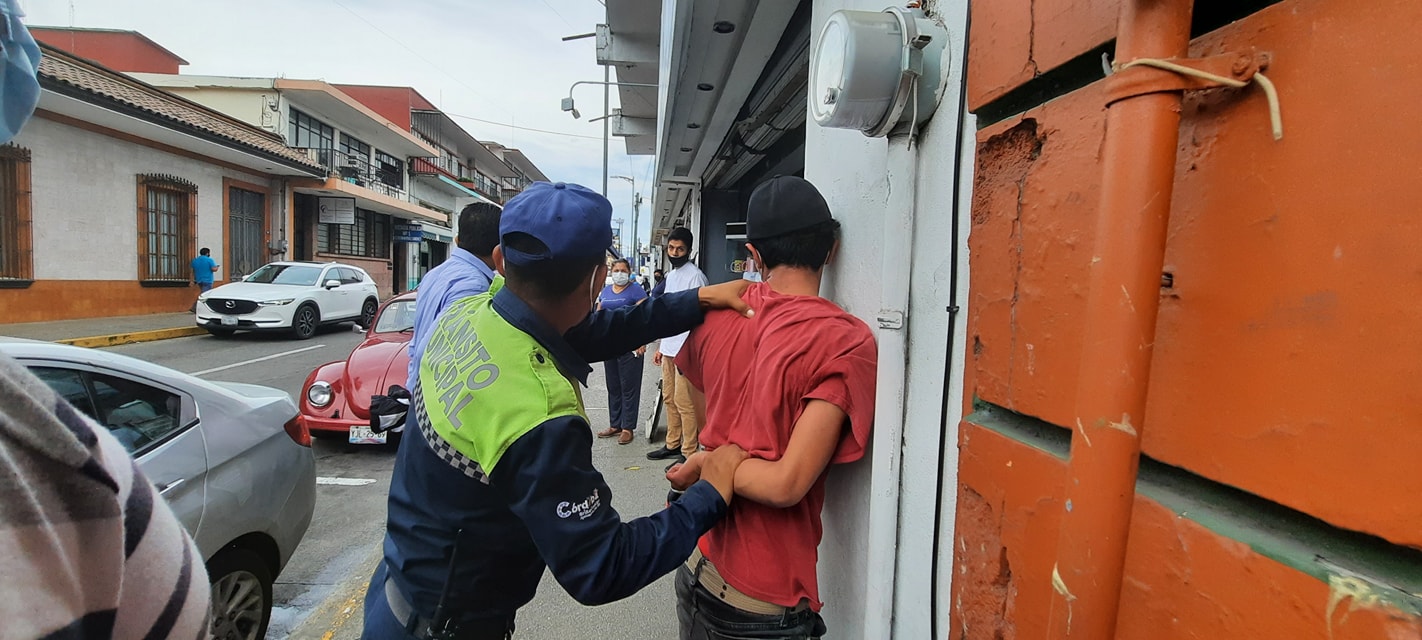 Córdoba, Ver. – Un hombre que minutos antes había robado en una tienda, fue detenido por un agente de Tránsito, cuando huía rápidamente.