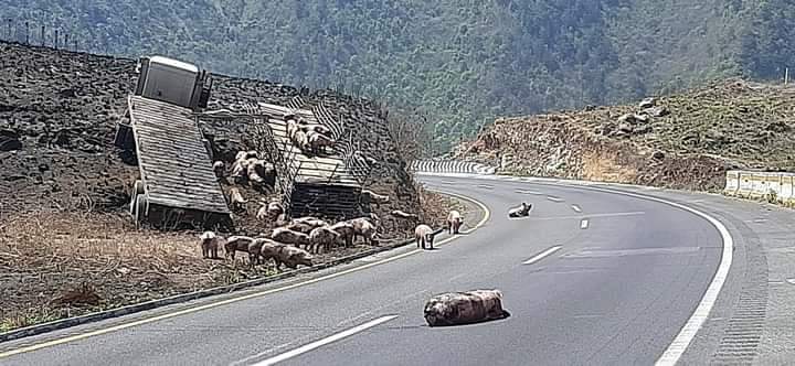 Maltrata, Ver. – Un tráiler cargado con cerdos se accidentó sobre la autopista Puebla-Córdoba, lo que ocasionó el robo de los animales.