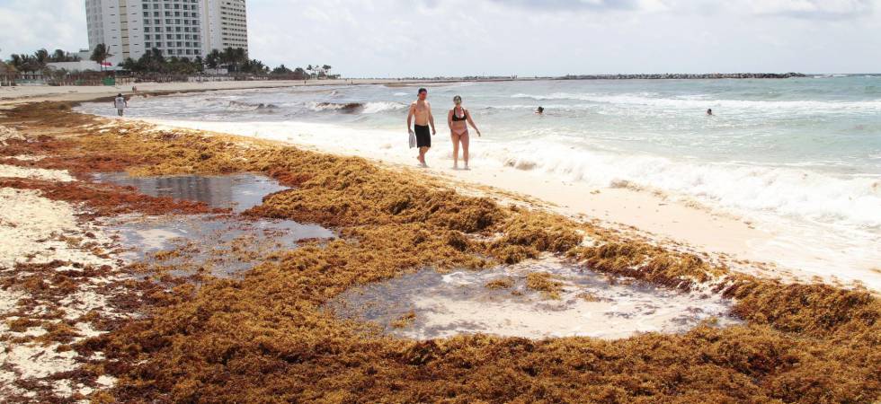 El sargazo, de color marrón, es arrastrado por corrientes del Océano Atlántico a las playas del Caribe, entre ellas las de México, y su temporada de afectaciones usualmente es de marzo a septiembre.