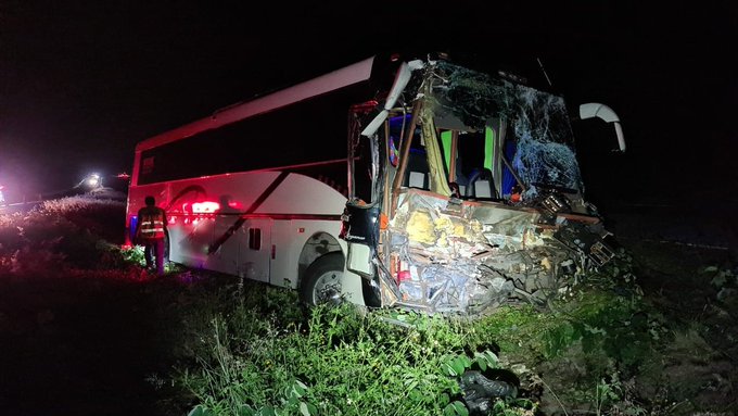 Fue en el kilómetro 13 a la altura del puente Texistepec, cuando el conductor del autobús con razón social ‘Vázquez’, aparentemente se durmió y terminó saliéndose de la carretera y chocó contra un muro de contención.