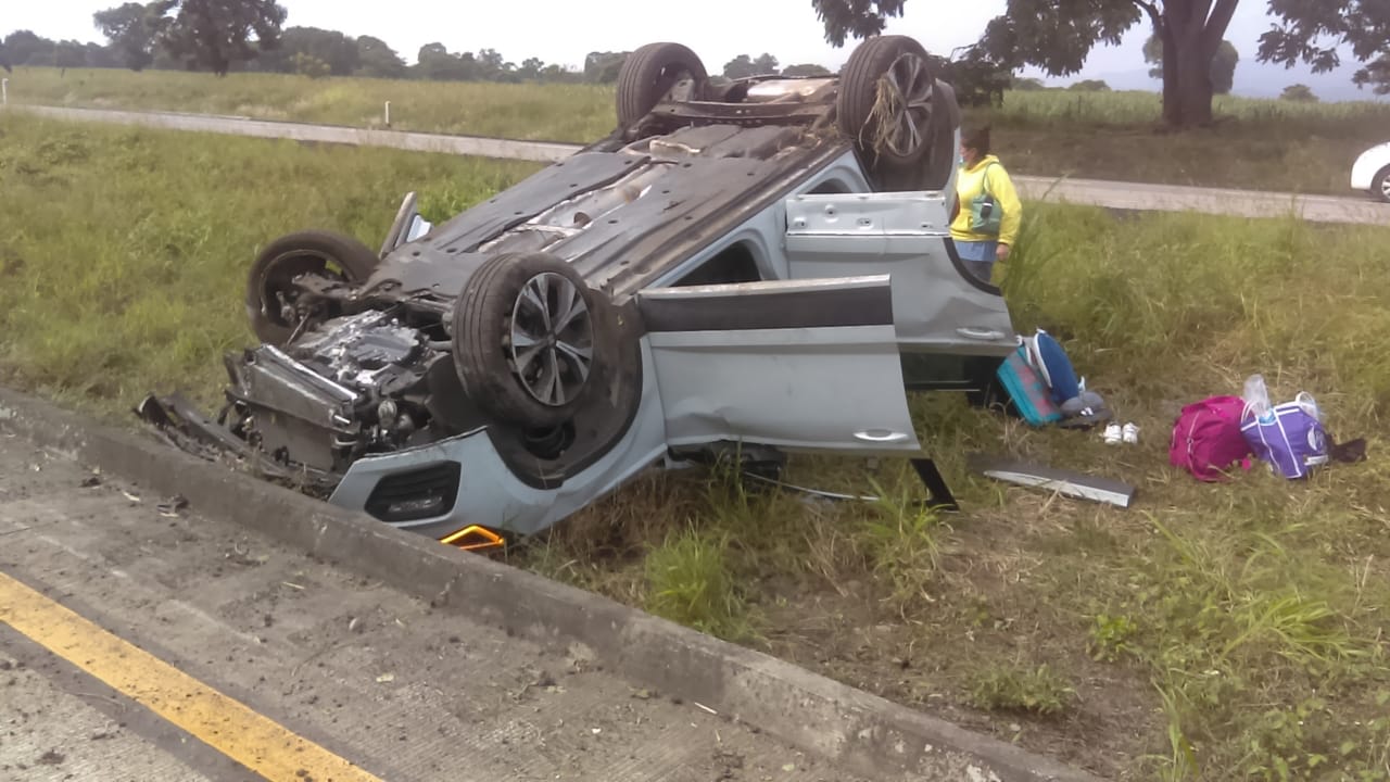 Amatlán, Ver. – Una familia resultó herida luego de volcar el vehículo en que viajaban sobre la autopista Córdoba-Veracruz.