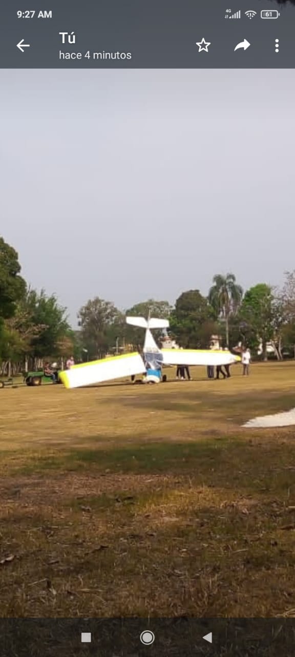 La aeronave, propiedad de Ernesto de Gasperín, era piloteada por Gustavo Amieva; ambos resultaron ilesos.