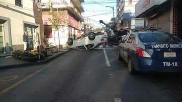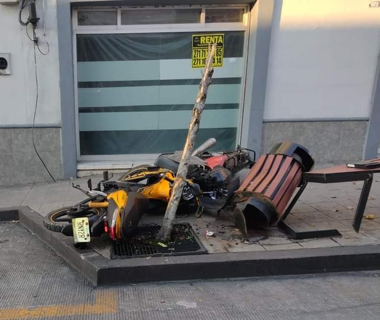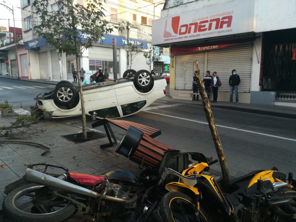Córdoba, Ver. – Una conductora se quedó dormida al volante y provocó que su vehículo chocara contra varias motocicletas y terminara volcándose, en pleno centro de Córdoba.