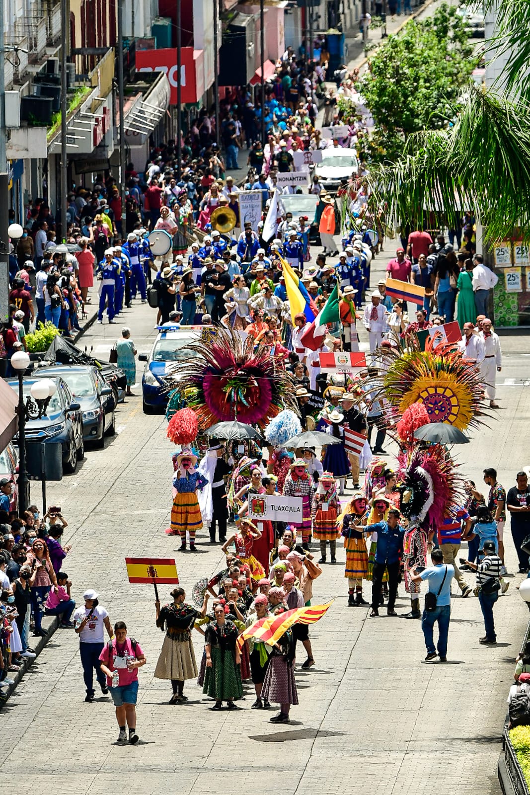 Desde las 12:00 del dia, cientos de familias cordobesas se congregaron en las principales calles de la ciudad para disfrutar de los 17 distintos bailes tradicionales nacionales e internacionales, cuatro de ellos de los países invitados, así como de los estados de Tlaxcala y Ciudad de México.