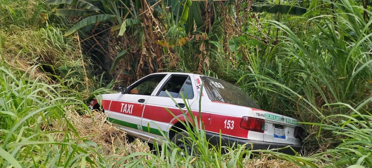 El taxi, que quedó en el vacío tras salirse de la carretera, fue rápidamente atendido por los primeros respondientes.