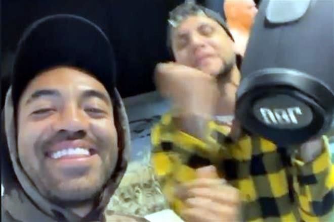 El artista Adso Alejandro compartió en Instagram un video en el que aparece Fabián brindando con el resto de los invitados. Después borró la historia.