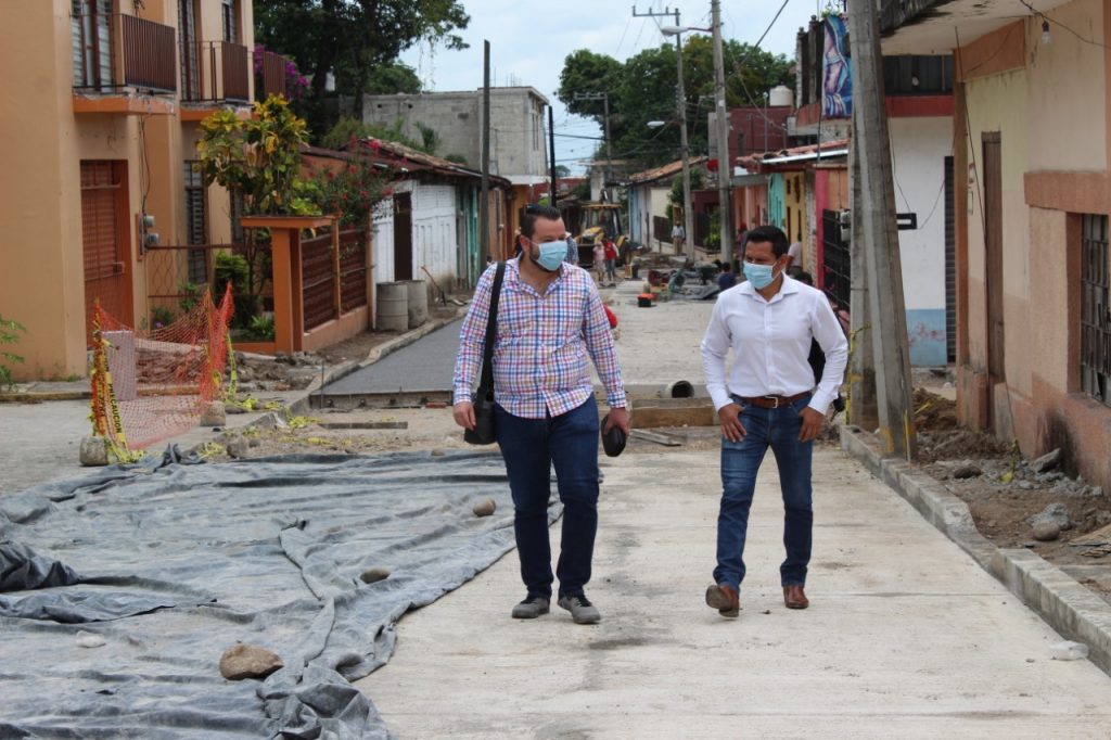 Junto con el secretario del Ayuntamiento, Gregorio Romero Méndez, recorrieron la avenida 3, desde la calle 1 hasta la calle 9, donde se observa un avance importante en la pavimentación con concreto hidráulico de 20 centímetros de espesor, así como el proceso de la construcción de banquetas.