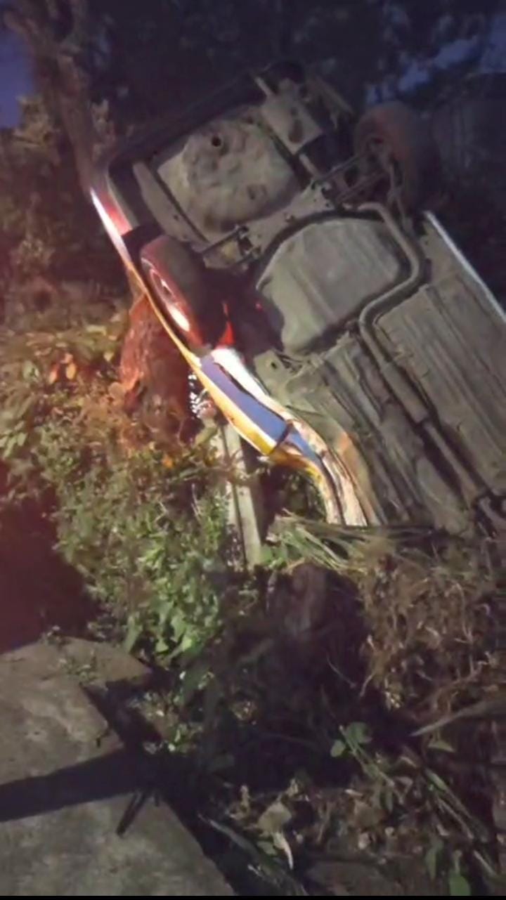Taxi de Córdoba vuelca en entrada a Amatlán