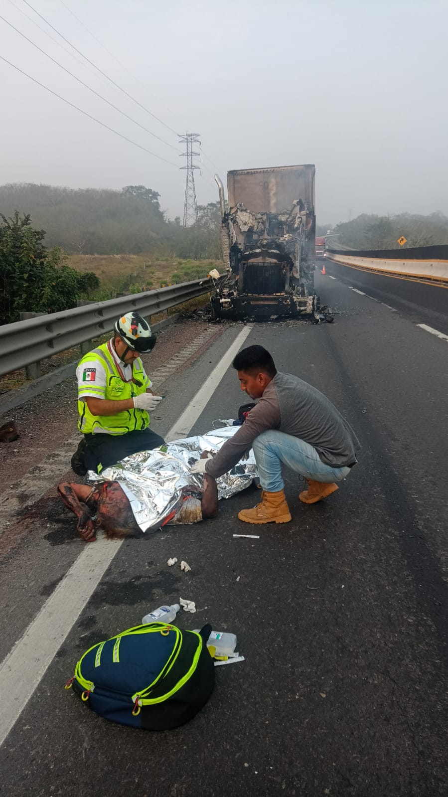 Cotlaxtla, Ver. – Con quemaduras en más del 70 por ciento de su cuerpo, resultó el conductor de un tráiler, luego de que su unidad se incendiara cuando circulaba sobre la autopista Córdoba-Veracruz, específicamente en el kilómetro 50 en dirección de La Tinaja a Paso del Toro.