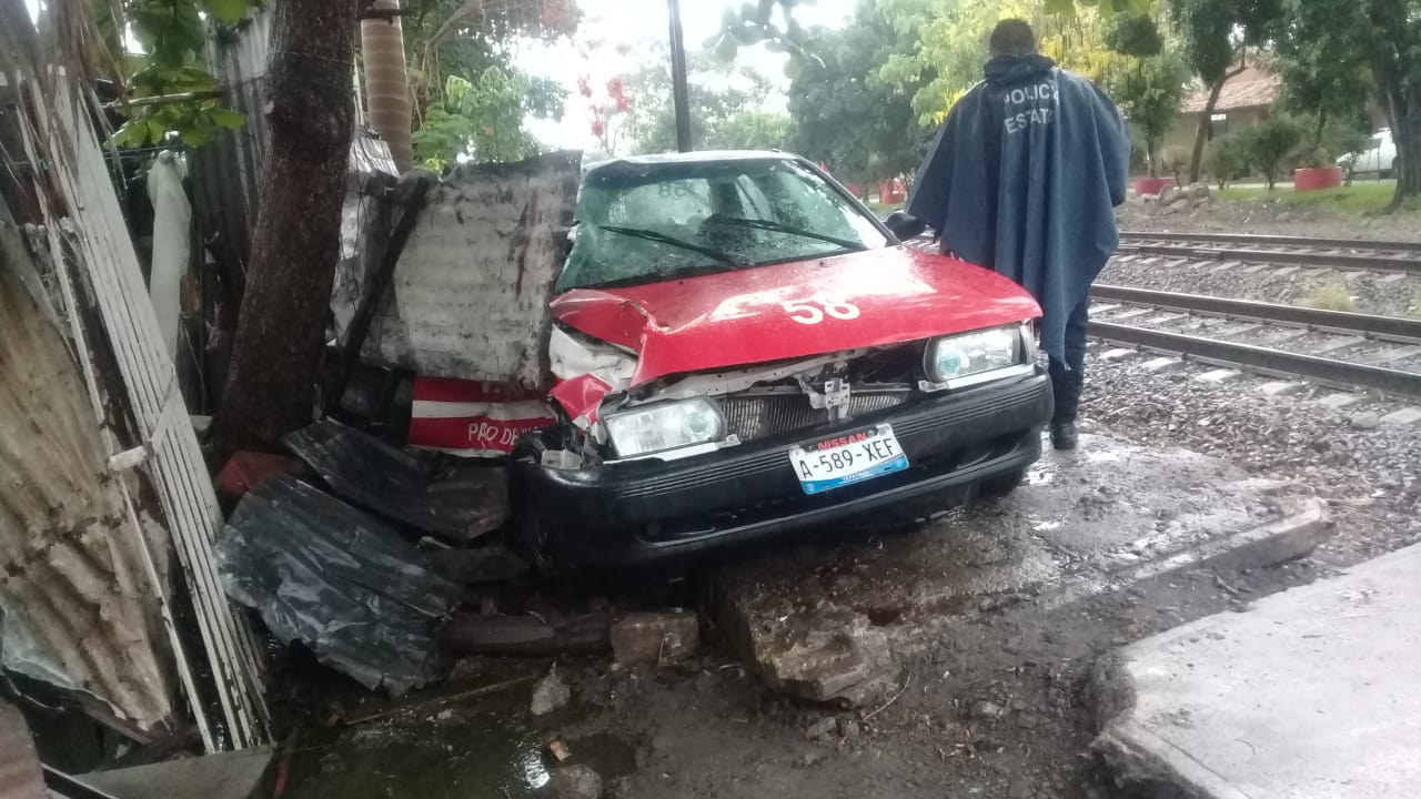 Camarón de Tejeda, Ver. – Un tren de carga arrastró a un taxi unos 30 metros para dejarlo inservible, luego de que el chofer no se detuvo cuando se aproximaba el convoy.
