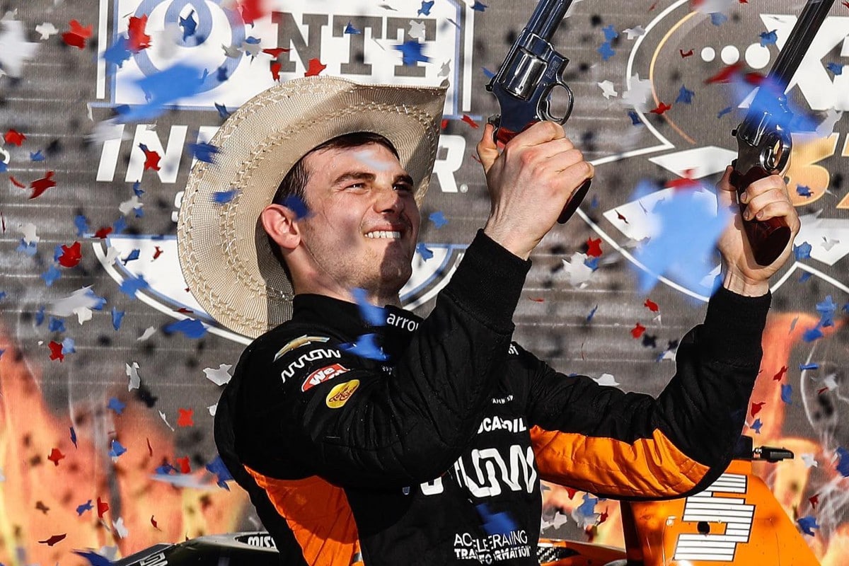 El regio, arriba de su auto número 5 de Arrow McLaren SP, selló un espectacular fin de semana de fecha doble: en la práctica del sábado finalizó segundo, en la primera carrera fue tercero y este domingo firmó su primera victoria.