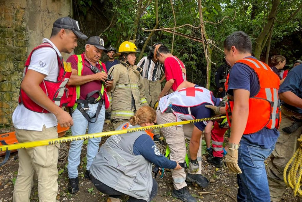 Con apoyo de cuerdas, arneses y equipo especializado, bomberos descendieron hasta la zona donde el hombre permanecía atrapado.