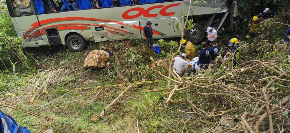 De acuerdo con las autoridades la unidad de la línea de transporte Ómnibus Cristóbal Colón (OCC) se impactó con un automóvil particular lo que provocó que perdiera el control y cayera por una barranca.