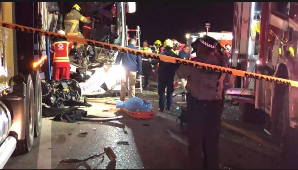 Ciudad Victoria, Tamps.— Una persona murió y más de 30 resultaron heridas la madrugada de este sábado luego de que un autobús de pasajeros de la línea Futura se impactara contra un tráiler que se encontraba estacionado sin señalamientos sobre la carretera Zaragoza–Victoria, informaron autoridades locales.
