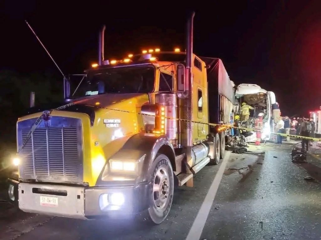 El accidente ocurrió durante la madrugada, cuando la unidad, procedente de Nuevo Laredo y con destino a Poza Rica, Veracruz, colisionó contra un tráiler detenido sobre la cinta asfáltica, lo que provocó severos daños en la parte frontal del autobús.