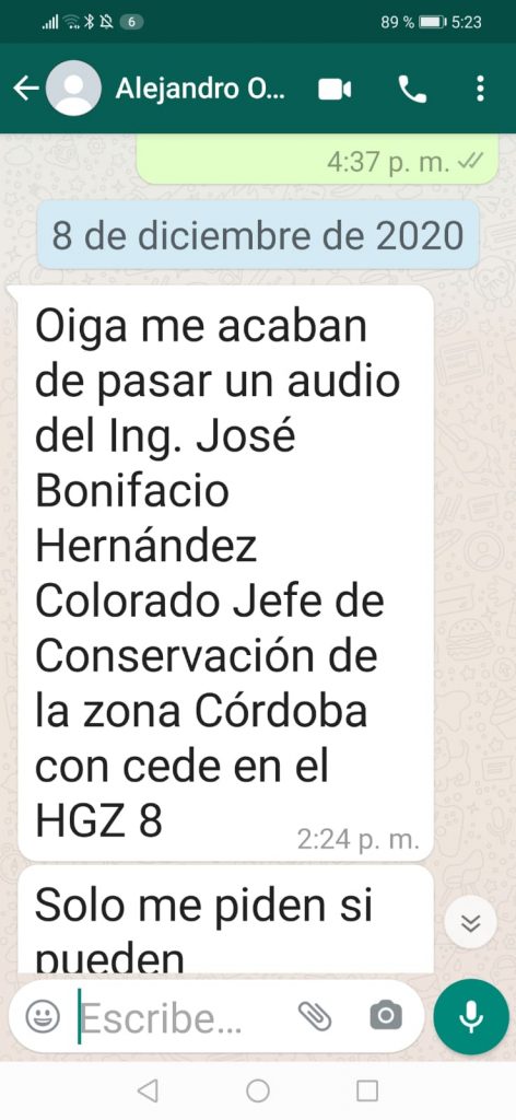 Inclusive, de ser necesario y para dar mayor crédito a mi palabra, entregaré a la FGR mi teléfono celular para que, a través de la Policía Cibernética, sea escaneado, hurgado pericialmente y se constate la autenticidad de los mensajes, de cuál número salieron, así como por ejemplo la nómina decembrina de todo el personal de la delegación y que como bien lo comentó el mercenario al cual me refiero, es un documento “confidencial” cuya filtración puso en peligro a sus propios compañeros trabajadores, toda vez que la delincuencia está a la orden del día..