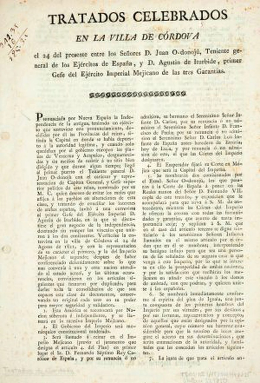 El documento, confirma El País, pertenece a los Tratados de Córdoba, firmados entre México y España el 24 de agosto 1821, en los que se proclama la independencia del País.