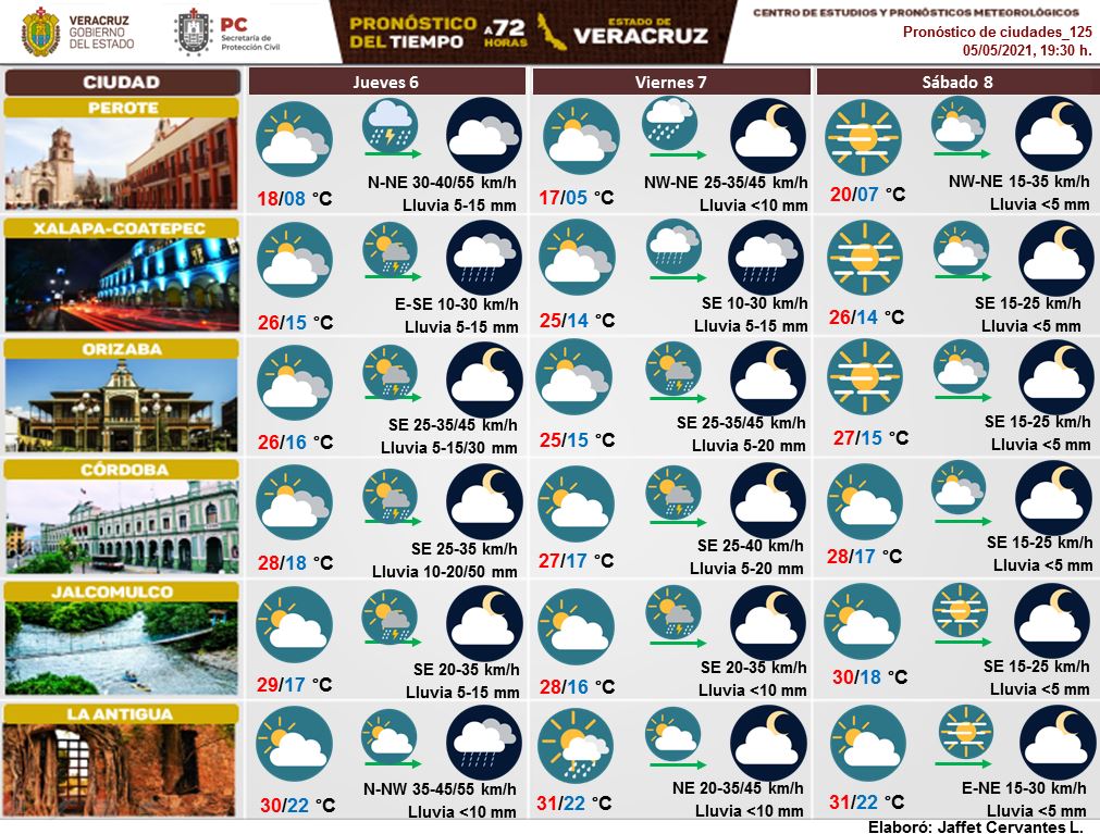 Córdoba, Ver. – Un frente frío afectará al territorio veracruzano durante el resto de la semana provocando vientos del norte, lluvias e incluso tormentas.