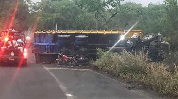 Cuichapa, Ver. – Un camión cañero sufrió un accidente al volcarse en el puente I de El Zapote.