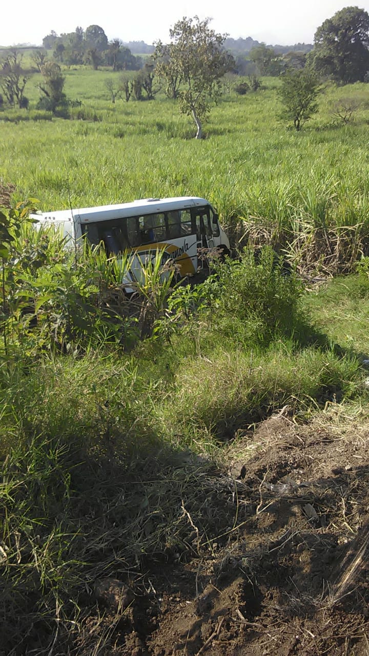 Tomatlán, Ver. – Al menos 15 heridos, dos de ellos de gravedad, fue el saldo de la volcadura de un autobús en la carretera Tomatlán-La Ermita.