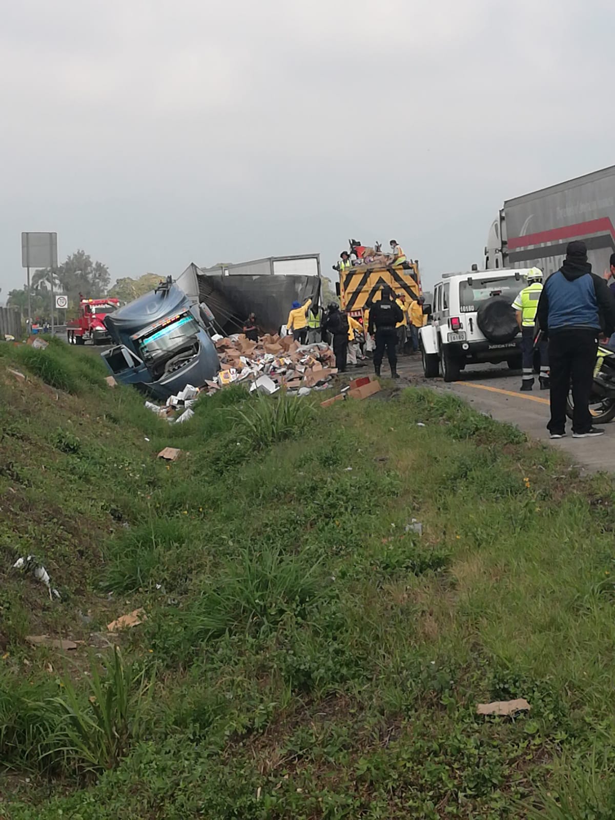 El tráfico quedó semiobstruido, debido a los trabajos para levantar la unidad y la mercancía.