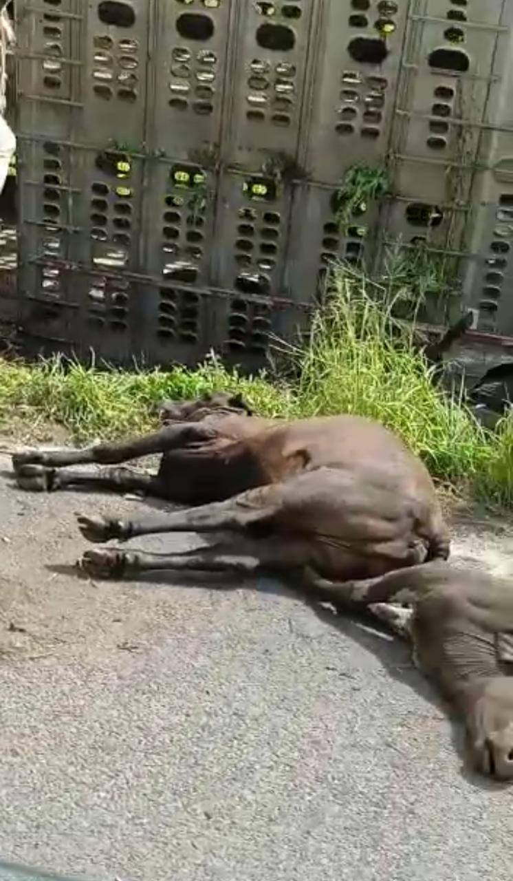 Isla, Ver. – Varias reses murieron luego de volcar el tráiler tipo jaula en que eran transportadas.